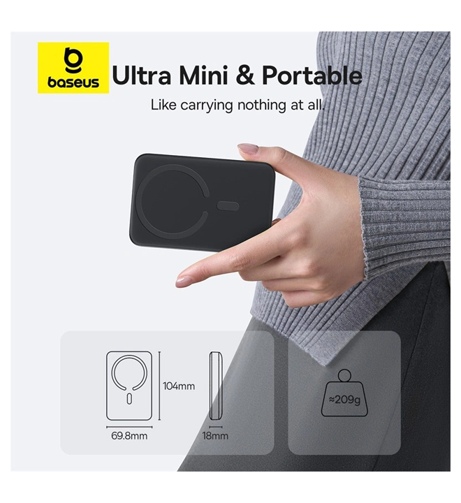 Baseus 10000mAh 22.5W EnerFill FM11 Ultra-Mini Magnetic Power Bank